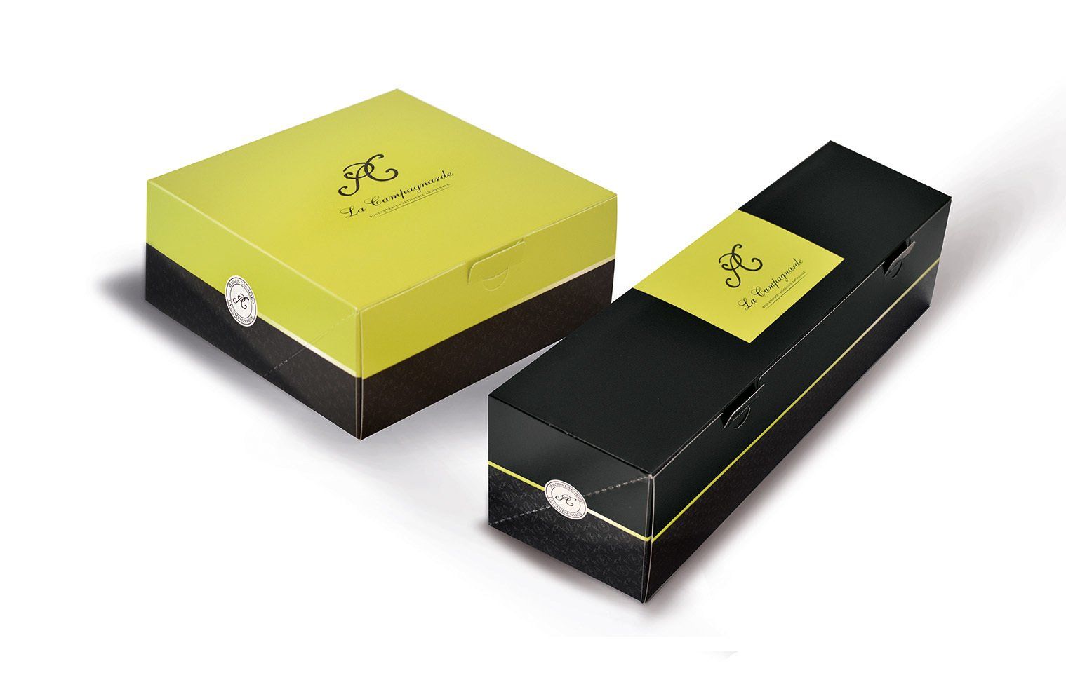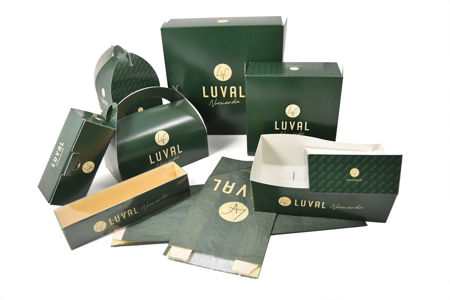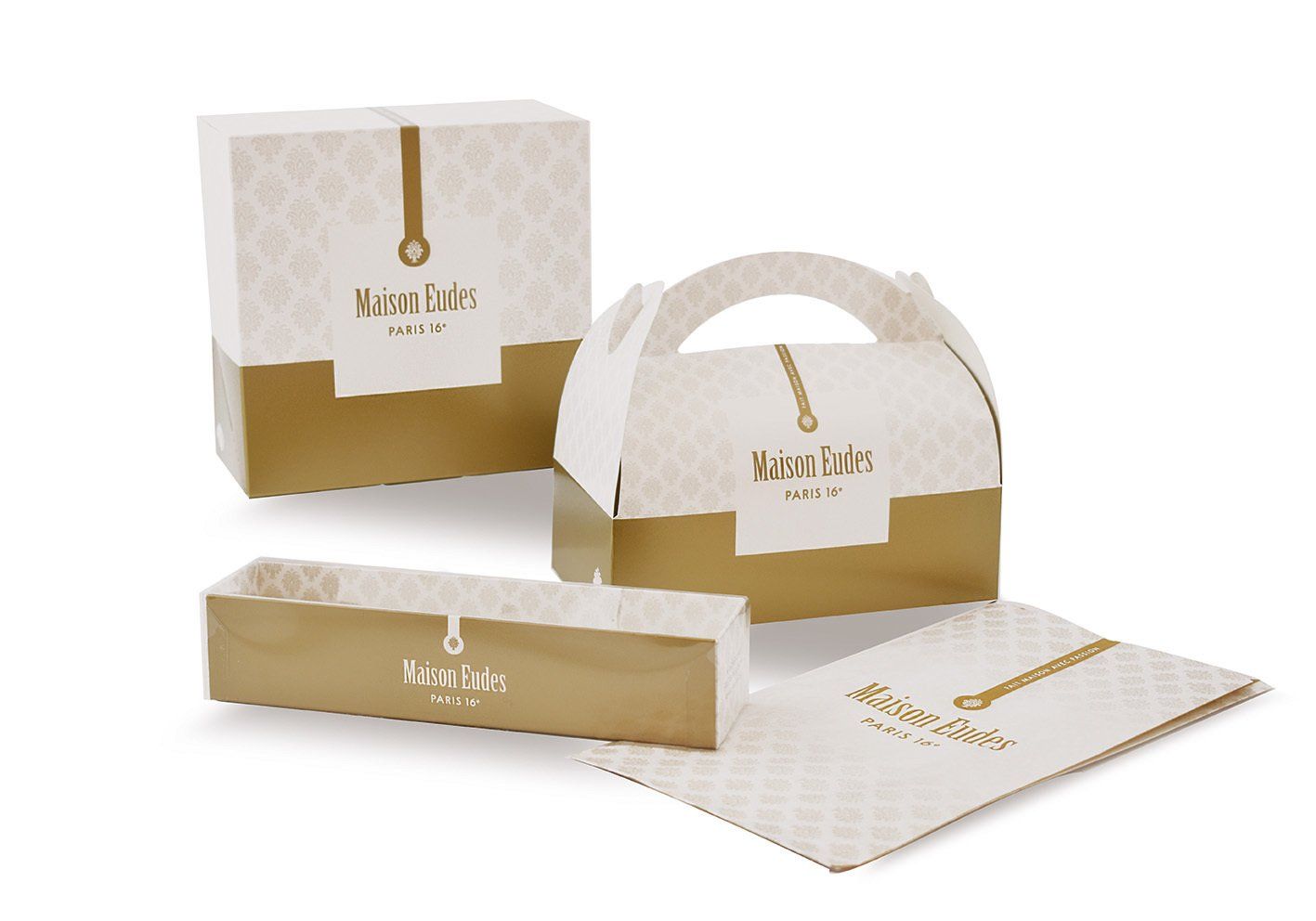 Boites pâtissières / poignées • Sacherie • Etuis macarons • Ecrins • Ballotins • Papier alimentaire • Etiquettes • Sacs poignées • Plateaux • Carrés rainés • Fonds pliés • Caissettes…